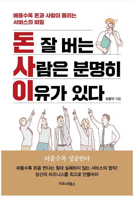 퍼줄수록 성공한다, 퍼줄수록 돈을 번다는 절대 실패하지 않는 서비스의 법칙! 당신의 비즈니스를 최고로 만들어라! 인간이 행복해지기 위해서는 무엇이 필요할까요? 이 질문에 가장 먼저 듣는 대답은 항상 같다. 바로 부자가 되는 것이다.<돈 잘 버는 사람은 분명히 이유가 있다>는 이 고민에 대한 해답을 제시한다. 저자는 행사 MC, 음식/옷 노점 장사, 웃음치료사, 발 마사지사, 마술사, 전문대학교 평생교육원 강사, 축구교실 강사, 고등학교 체육교사, 카페바 사장, 전문대학교 학과장 등등 자신이 한 일을 풀자면 한도 끝도 없다고 한다. 이 모든 고생의 목표는 단 하나, 성공이었다. 그리고 그 목표를 이뤘다고 감히 말할 수 있다고 말한다. 수백, 수천억대의 자산가는 아니지만 빚 한 푼 없이 넉넉한 자산을 일궈냈고, 20년 넘는 경력의 서비스 전문가이자 사업가, 유튜버가 되었다. 엉망진창으로 꼬였던 인생이 결국 풀렸고, 어린 날 반드시 꿈을 이루겠다고 두 주먹 불끈 쥐었던 것이 부끄럽지 않게 살아가고 있다면서 그 경험들을 말하고 있다. 챕터 1 에서는 어떻게 팔까라는 가게 서비스의 전략, 챕터 2 에서는 잘 나가는 사장의 전략, 챕터 3 에서는 성공을 부르는 자기 관리로 꼭 알아야 할 가게 서비스 정보와 지식, 돈을 버는 노하우를 책에 담았다.