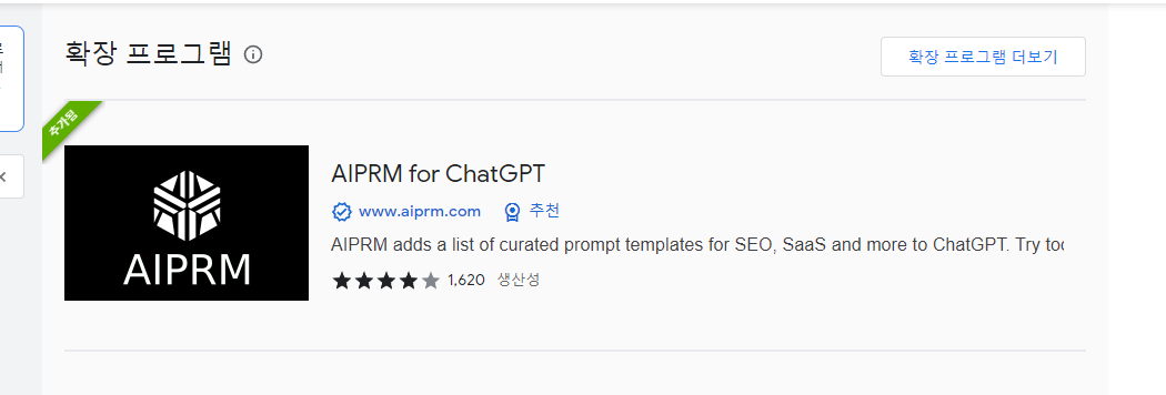 chrome 웹 스토어에서 "AIPRM for ChatGPT"를 검색합니다.