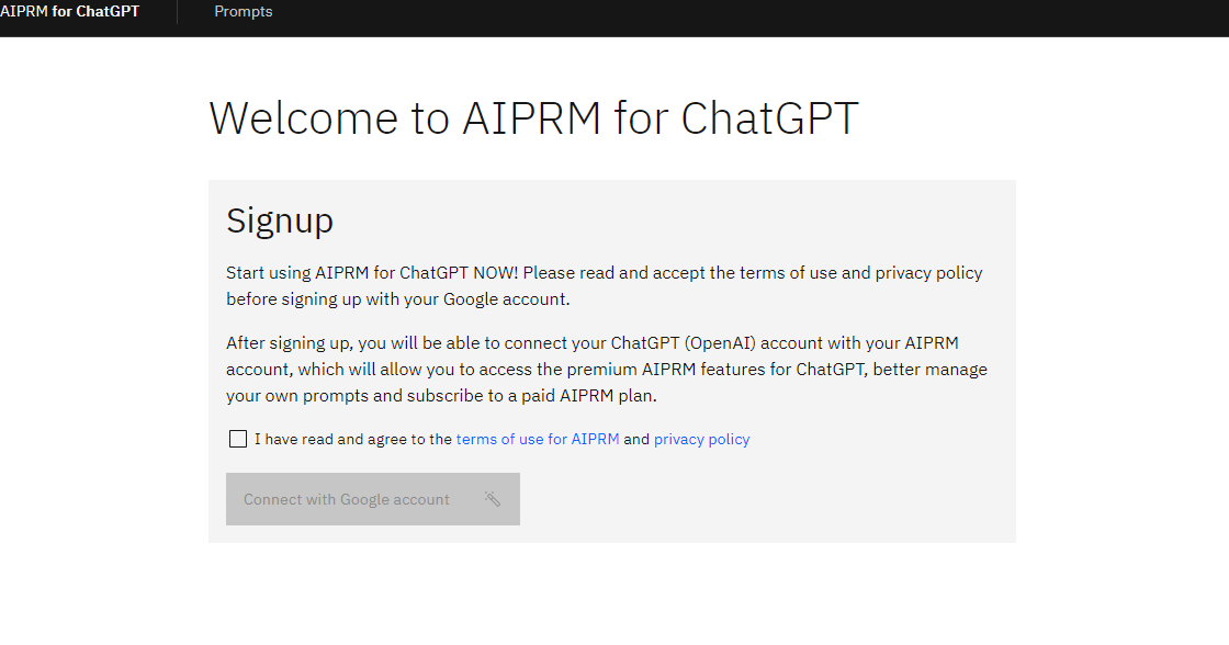 ChatGPT 사이트에 접속하면 AIPRM 관련하여 동의를 얻어야 합니다.