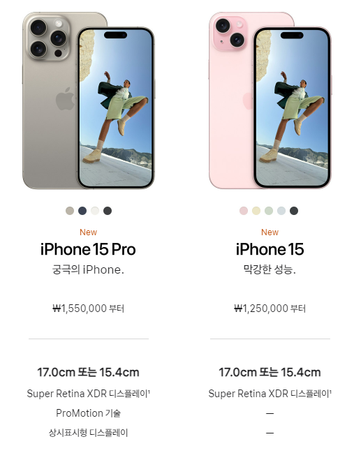 아이폰 15와 15프로에서의 차이점이 큽니다. (물론 가격 차이도 큼...) 250만 원?
