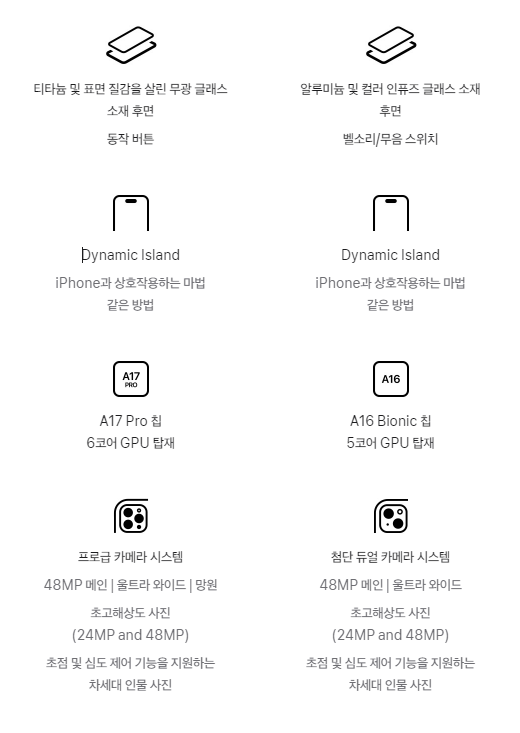 아이폰 15와 15프로에서의 차이점이 큽니다. (물론 가격 차이도 큼...) 250만 원?