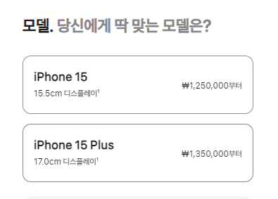 가격은 아이폰 15의 경우 125만 원부터 , 15 플러스의 경우 135만 원부터입니다. 매우 비싼 가격이라고 할 수 없을 정도로 근래 출시되는 상당수의 제품들이 100만 원대 중반정도 되기에 느낌상으로는 매우 비싸다는 느낌은 없지만 핸드폰이 100만 원대라는 것 자체가 이미 가스라이팅을 당한 게 아닐까 싶습니다.