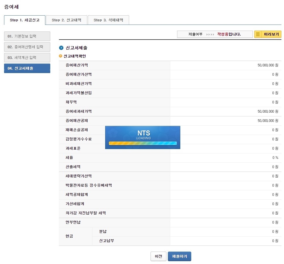 - 증여재산가액: 자녀에게 실제로 증여한 금액을 적어주세요. 예를 들어 5,000만 원을 증여했다면 '50,000,000'을 입력합니다.