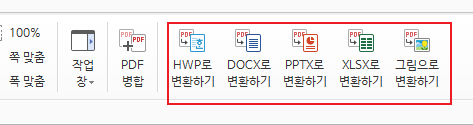 해당 PDF파일을 jpg, hwp, doc, gul, xls, ppt 등으로 업로드 가능한 파일형식으로 변환하는 것이죠.