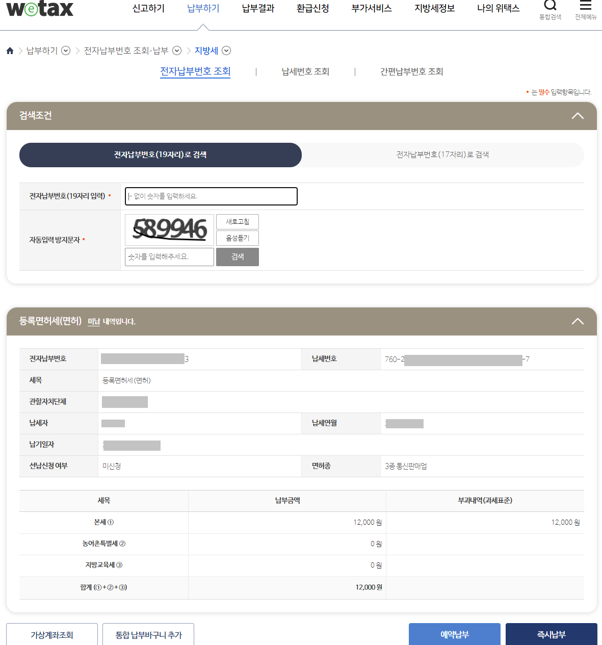 통신판매업신고가 승인되면 등록면허세를 납부해야 합니다. 등록면허세는 지방세이기 때문에 위택스에서 납부해야 합니다.