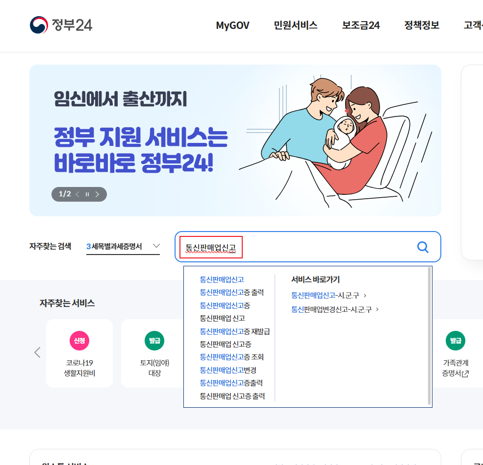 통신판매업신고를 하기 위해서는 정부 24에서 진행합니다. 신고하기 전에 꼭 사업자등록증이 있어야 합니다.