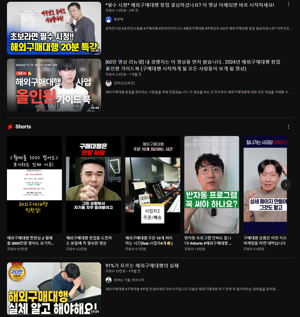 해외구매대행 관련하여 유튜브에 검색해 보면 다양한 분들이 보입니다.
